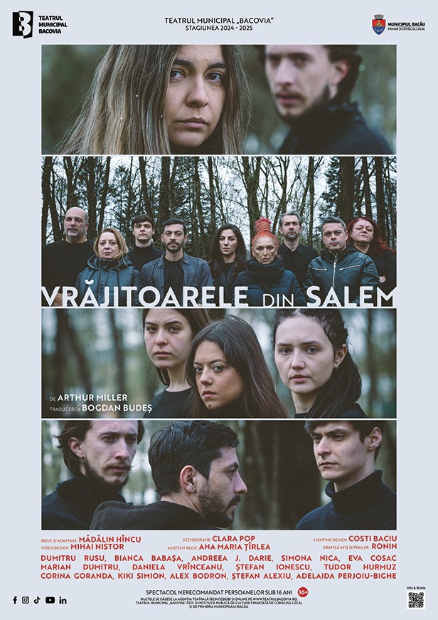 VINERI, pe 14 noiembrie, de la ora 18,30, pe scena teatrului bârlãdean se joacã VRÃJITOARELE DIN SALEM, de Arthur Miller, de la Teatrul Municipal Bacovia. Între anii 1692 – 1693, în Salem (si nu numai) peste 150 de oameni au fost arestati pentru vrãjitorie… Autorul face din acest proces o metaforã, o aducere-aminte a faptului cã ratiunea, uneori, esueazã. Prin fricã, psihoza colectivã atinge dimensiuni uriase, iar omul devine usor de manipulat. Când societatea se confruntã cu dificultãti, e nevoie, întotdeauna!, de un vinovat. Prin urmare, fiecare epocã va avea propriile „vrãjitoare”.