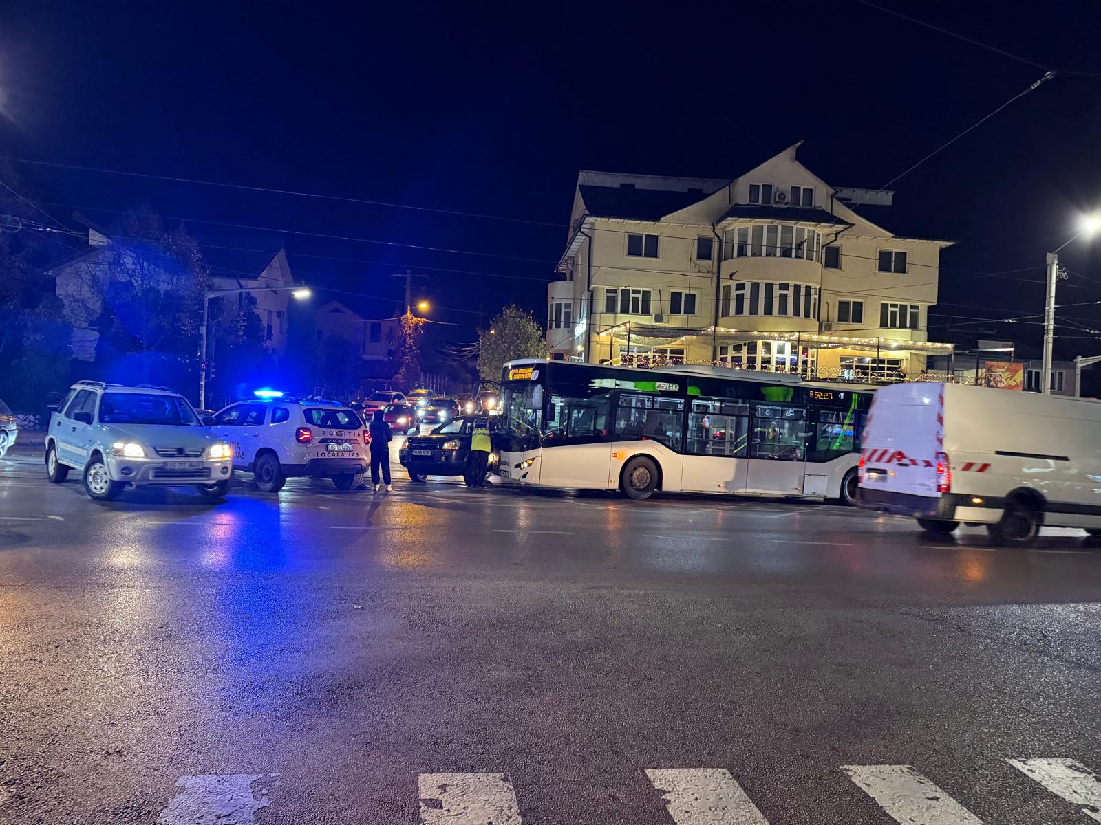 Un accident rutier a avut loc în această seară, în zona Belvedere din municipiul Iași. Un autoturism a intrat în coliziune cu un autobuz, după ce șoferul autoturismului a încercat să vireze la stânga, către stația de carburanți MOL, manevră interzisă în acel punct.