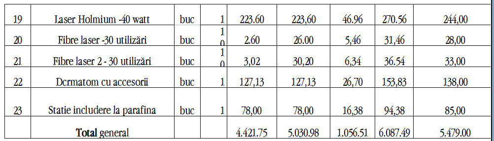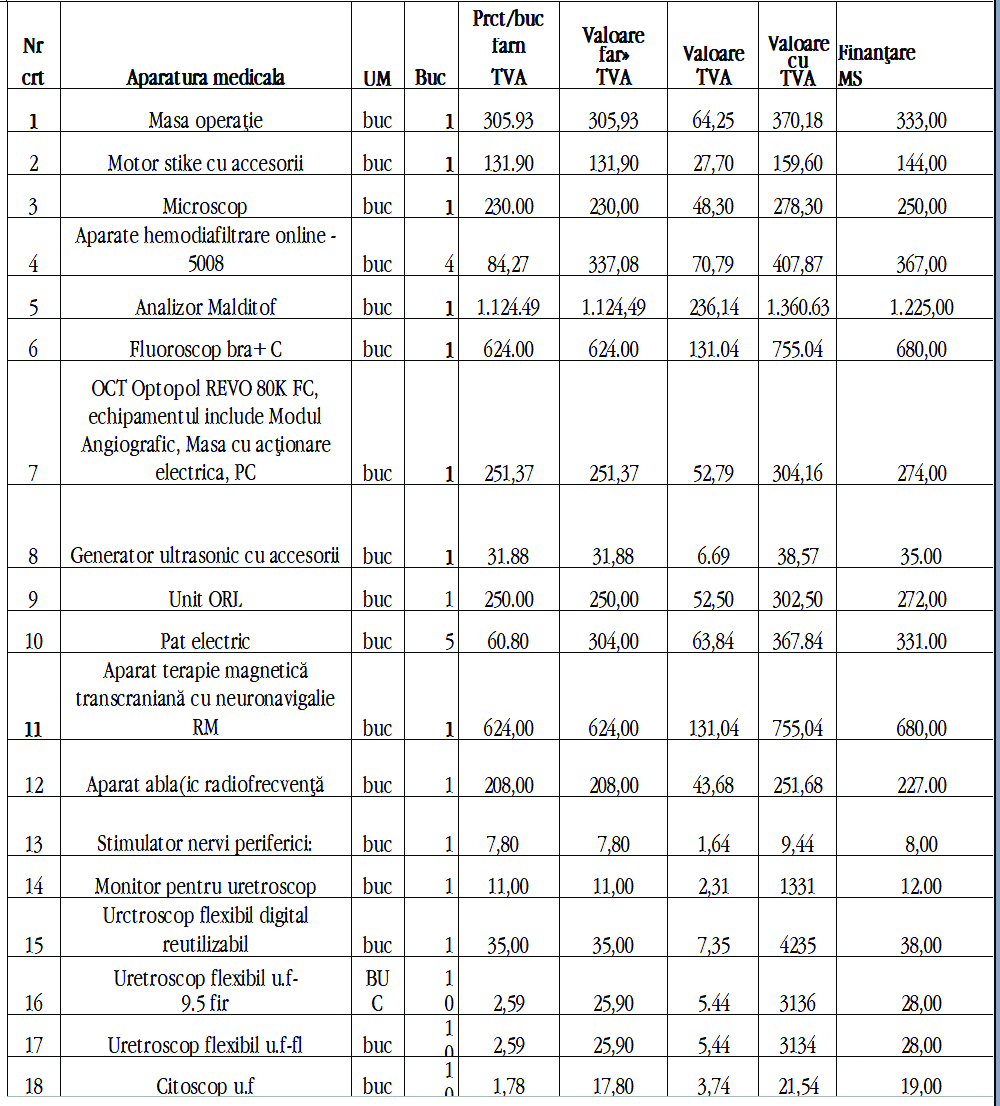Iatã, lipsa completã a achiziilor pe care le va face Spitalul Bârlad cu cele 6,08 milioane de lei de la Ministerul Sãnãtãtii, în care se insereazã si contributia de 10% a Primãriei Bârlad: