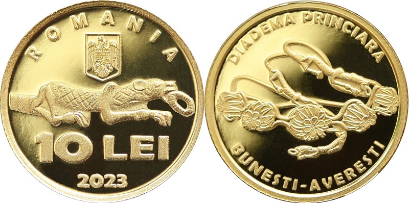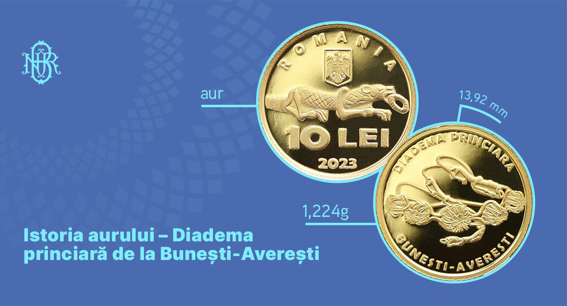 Importanța sa a fost recunoscută recent și de Banca Națională a României: în decembrie 2023, BNR a emis o monedă comemorativă din aur (10 lei) dedicată „Istoriei aurului – Diadema princiară de la Bunești-Averești”, marcând 45 de ani de la descoperirea piesei. Numele comunei vasluiene strălucește acum literal pe o monedă de aur, ca o confirmare a locului său special în patrimoniul arheologic al țării.