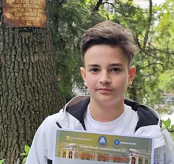 Elevul Darius Teodor Țocu, între premianții Concursului Național “Ionel Teodoreanu” de la Iași