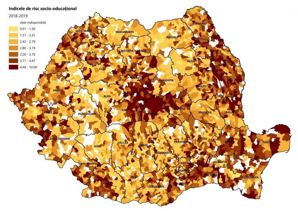 Harta școlilor dezavantajate din România. Județele cu cei mai mulți profesori necalificați și cu cel mai mare risc de abandon școlar