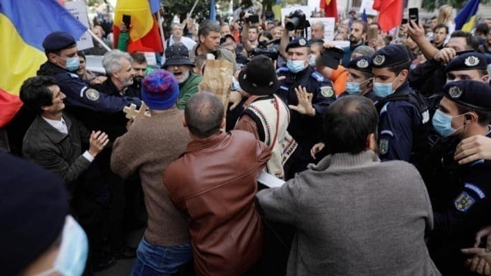 Proteste de amploare în Piaţa Universităţii, în ziua cu infectări-record! Bătăi şi îmbrânceli între jandarmi şi manifestanţi VIDEO