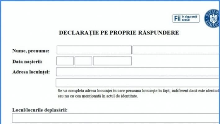 O nouă DECLARAŢIE PE PROPRIA RĂSPUNDERE din cauza Covid 19. Câţi români trebuie să o completeze