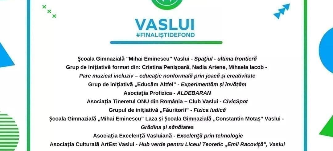 Lista initiativelor vasluiene care vor primi finantare în programul „Fondul pentru un viitor mai bun în comunitãti”