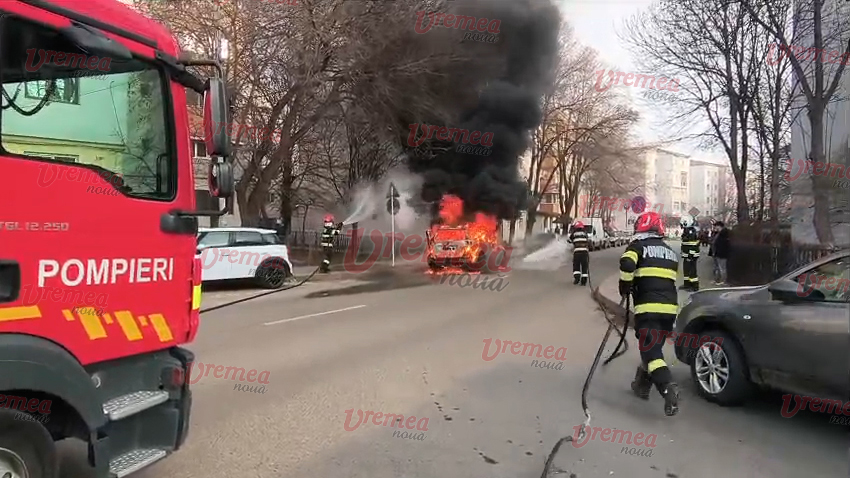 Autoturism cuprins de flăcări în municipiul Vaslui | VIDEO