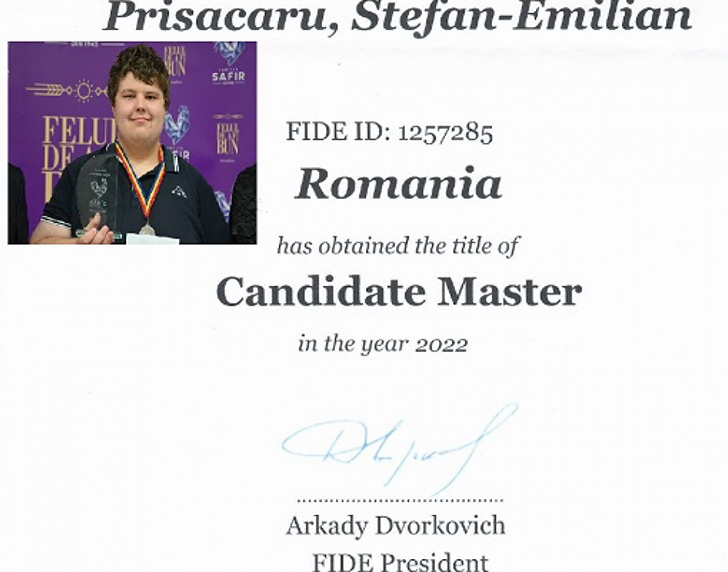 Ștefan Prisăcaru, cel mai tânăr Candidat Maestru de șah din județ