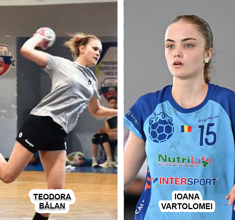 Ioana Vartolomei, fiica primarului comunei Muntenii de Sus, Ion Vartolomei, a început handbalul la o vârstă fragedă, la doar 6 ani. Deși la început nu a fost foarte atrasă de acest sport, odată cu trecerea timpului pasiunea pentru handbal a crescut tot mai mult. Primii pași i-a făcut la Liceul cu Program Sportiv Vaslui, sub îndrumarea regretatului antrenor Sorin Onofrei, iar apoi a fost pregătită de profesorul Gabriel Chirilă. La începutul anului trecut, Ioana s-a transferat de la Vaslui la ACS Olympic RFH Buftea, club coordonat de fosta mare handbalistă Ramona Farcău. Născută în anul 2008, Ioana evoluează pe postul de centru, dar poate juca și inter. În acest an, tânăra handbalistă a semnat un contract cu RFH Sports & Management, companie specializată în servicii integrate de suport și management sportiv. Printre modelele sale se numără Cristina Neagu și norvegianca Nora Mork. De cealaltă parte, Teodora Daria Bălan este o prezență deja obișnuită în loturile naționale. Ea evoluează atât pentru LPS Vaslui, cât și pentru Centrul Național Olimpic pentru Pregătirea Juniorilor (CNOPJ) de la Bistrița, alături de colegele sale Karina Rîpă, Erika Ungureanu și {tefania Spînache, toate formate la LPS Vaslui. Ea nu se află la prima selecție în reprezentativele României, având deja convocări atât la junioare, cât și la cadete. Teodora este pregătită la LPS Vaslui de profesoara Ramona Popa, iar prestațiile sale au recomandat-o din nou pentru lotul național de junioare. Ea evoluează pe postul de pivot.