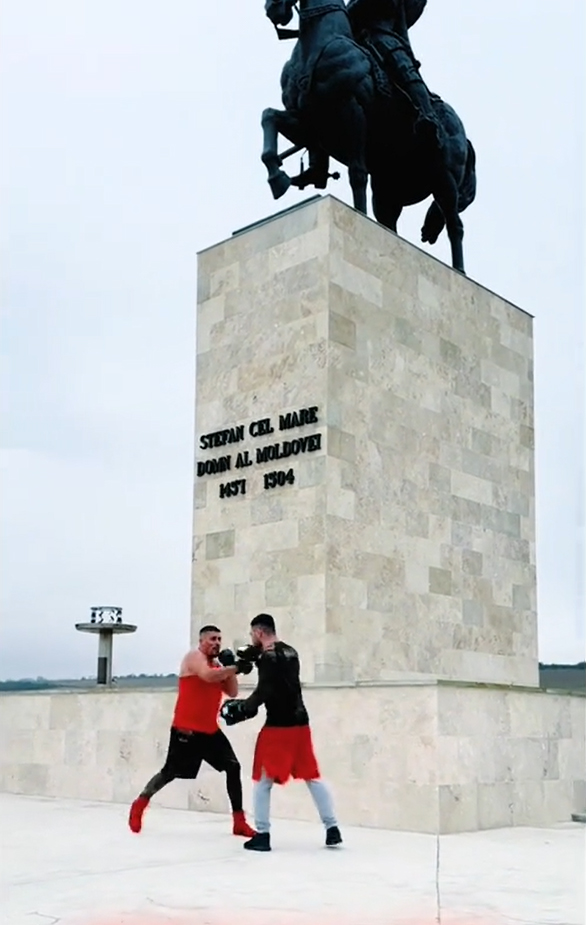 SECRETUL SUCCESULUI… Ionuț Moșailov, cel mai de succes “vultur” al Vasluiului, a fost de acord să prezinte o parte din exercițiile care au stat la baza succesului său fulminant, mai ales pe rețelele de socializare. Se pare că banalele scări, folosite de toată lumea, inclusiv de Rocky Balboa, sunt un capitol important în pregătirea “vulturului” care are “cuib” pe dealurile comunei Pușcași. Acesta a postat pe tik-tok un video de la una dintre ședințele de pregătire, pe care a ținut-o într-un loc mai puțin obișnuit, la statuia lui Ștefan cel Mare de la Băcăoani. Echipat ca un veritabil boxer, Moșailov l-a avut ca antrenor de ocazie pe Andrei Șerban, unul dintre vasluienii care fac ravagii în ringul de luptă. Se pare că perioada când sportivii erau scoși de antrenori pe scările de lângă Stadionul Municipal, sau când erau alergați până la releul de la Tanacu au apus, acum e fiță să te antrenezi la umbra marelui domnitor.
