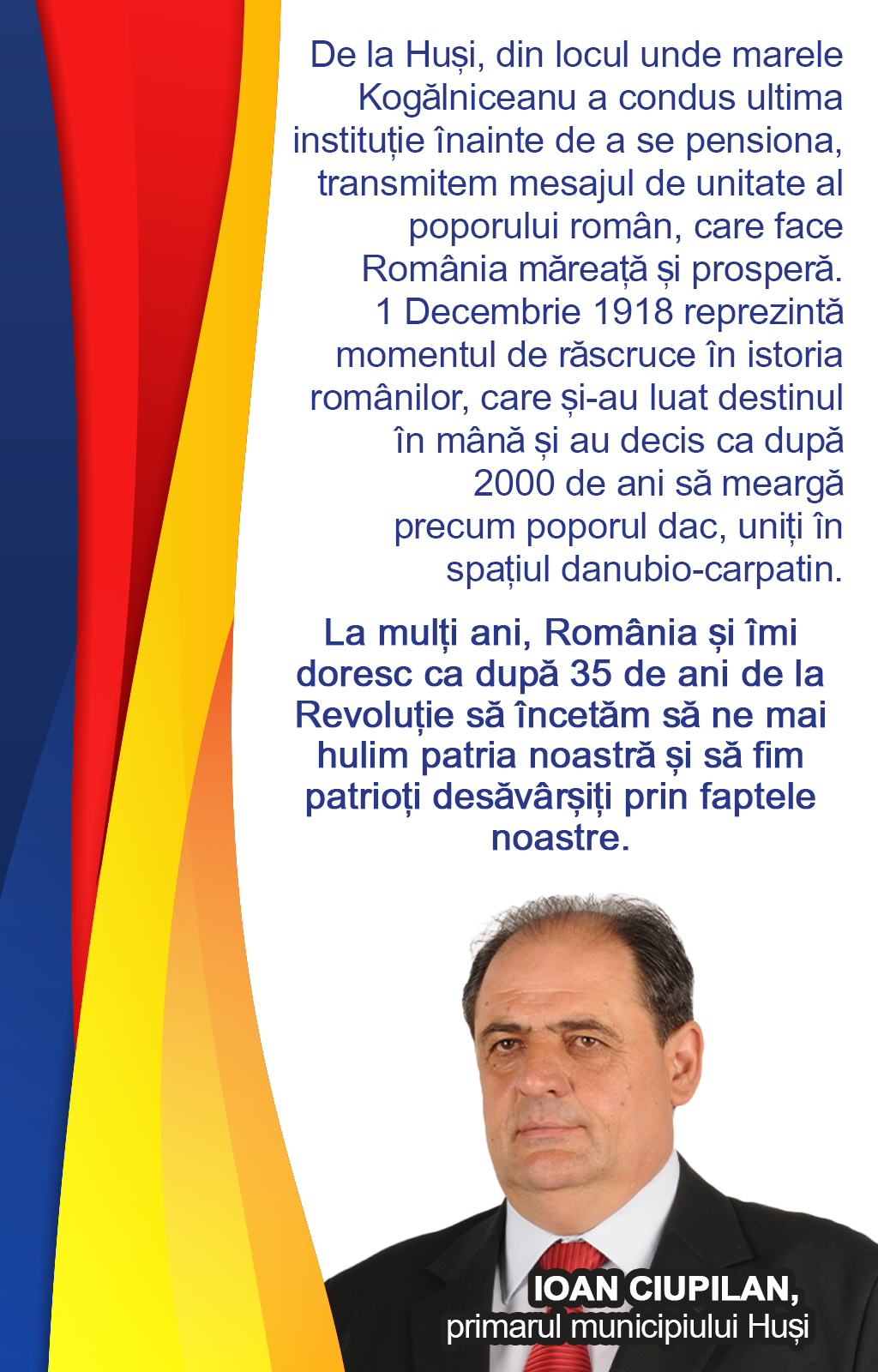 A.T.: Nu avem voie să transformăm Ziua Națională a României într-un pretext de arborare a unor mesaje anuale, de multe ori exacerbate și prea puțin trăite. Ceea ce vreau să le transmit eu cititorilor dvs. este să-și manifeste patriotismul în fiecare zi, prin activitatea lor, prin principiile lor de viață, prin hărnicia și echilibrul lor. A fi patriot înseamnă, după părerea mea, să îți faci datoria cum poți mai bine, la locul tău de muncă, în familia ta, în comunitatea ta. A fi patriot înseamnă să-ți cunoști trecutul suficient de bine încât să nu-i repeți greșelile și să-i prețuiești sacrificiul. Doresc tuturor o Zi Națională cu bucurie și înțelepciune. LA MULȚI ANI, ROMÂNI!