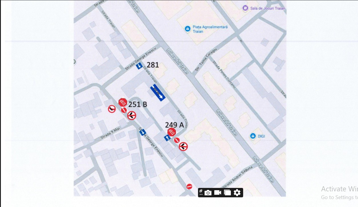 – Str/.Traian, din drepul intersecției cu str. George Enescu (bl. 281) până în dreptul blocului 249 sc. A, sensul de mers către blocul 249, scara A