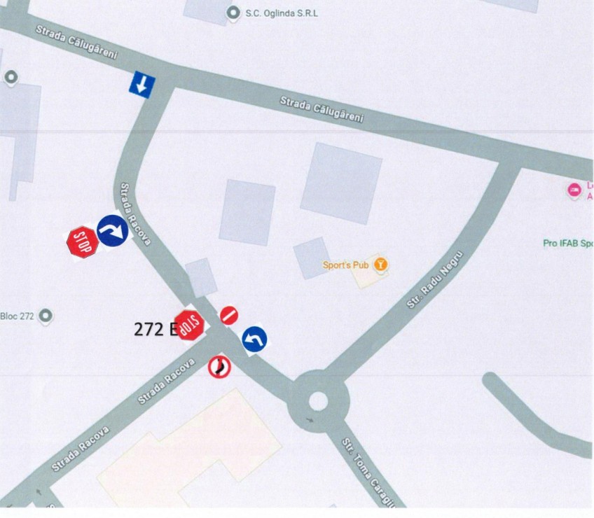 – Str. Racova, din dreptul intersecției cu str. Călugăreni până în dreptul blocului 272 sc. E, sensul de msers către blocul 272, scara E