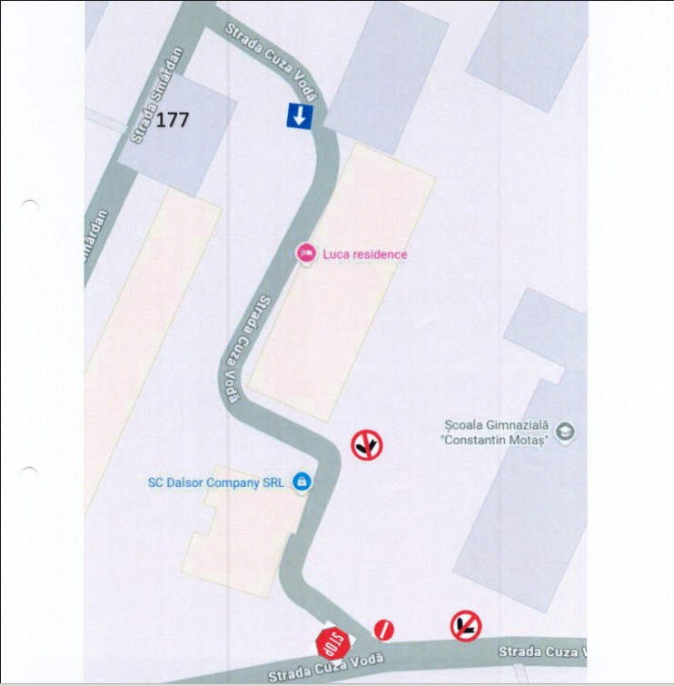 – Str. Cuza Vodă alee, din dreptul blocului 177 până la intersecția cu str. Cuza Vodă, sensul de mers către intersecția cu str. Cuza Vodă