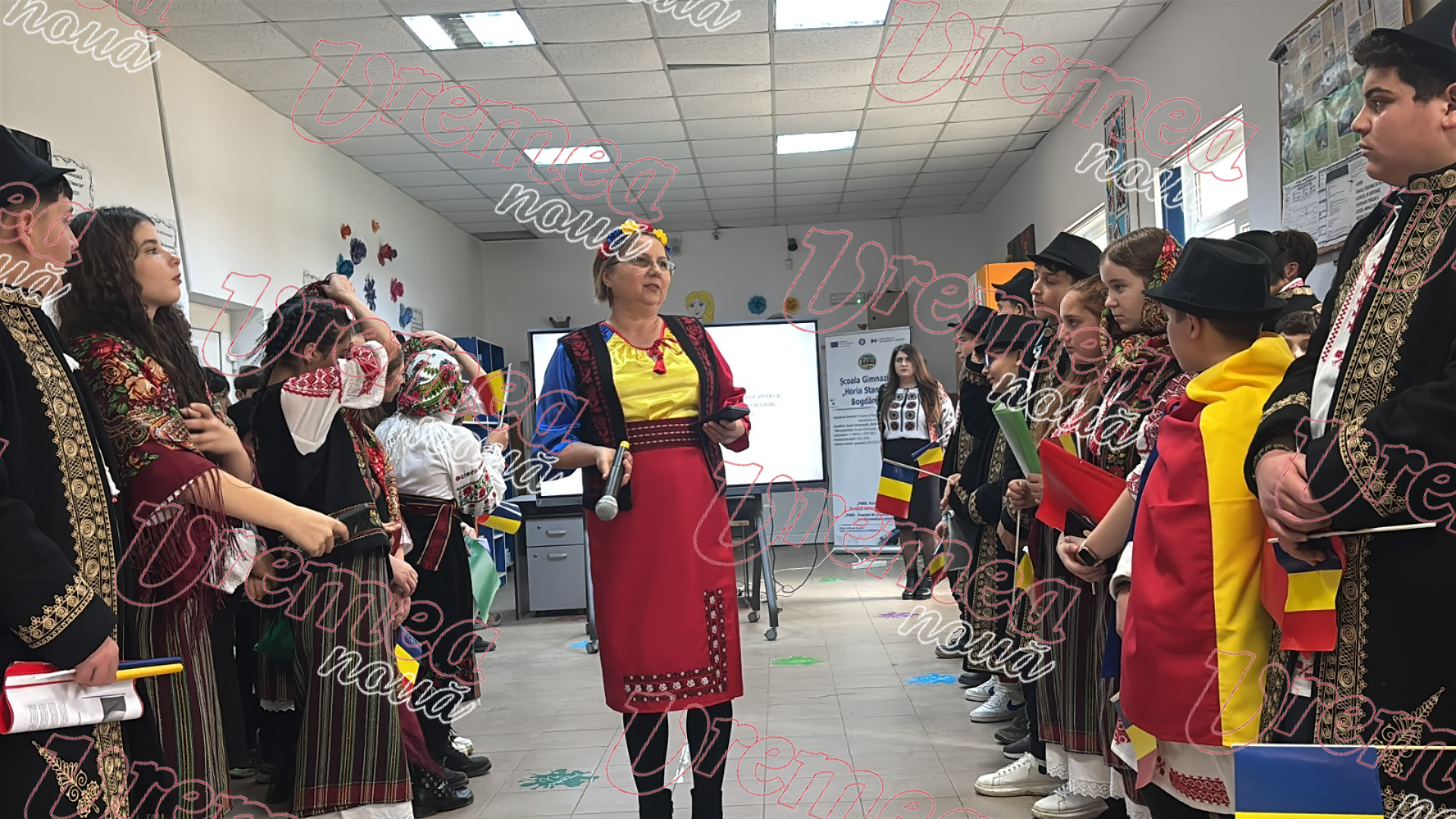 SĂRBĂTOARE… La Bogdănești, s-a sărbătorit în avans 1 Decembrie, Ziua Națională a României. Administrația locală a fost alături de elevii Școlii Gimnaziale „Horia Stamatin”, care au oferit un spectacol emoționant în fața unui public destul de numeros, format, în mare parte din părinții celor mici. „Ziua Națională a României este ziua când cinstim unitatea, istoria și valorile care ne definesc ca popor. Este un moment în care privim cu respect și recunoștință spre trecut și cu speranță spre viitor, amintindu-ne că identitatea noastră se clădește prin fiecare gest de solidaritate și prin fiecare pas făcut împreună”, a declarat prof. Elizabet Ciobanu, directoarea unității de învățământ. După momentul artistic organizat în școală, elevii împreună cu cadrele didactice au pornit într-un marș stradal pe drumul principal din comună, fluturând steaguri tricolore și reușind astfel să atragă admirația curioșilor de pe margine. „Este foarte bine că li se insuflă dragostea de țară pentru că vedem cum sunt crescute generațiile de copii din ziua de azi. Avem Haloween, mai nou, avem Valentine’s Day, în timp ce tradițiile și obiceiurile noastre dispar. De aceea, consider că ce s-a organizat azi, în comuna noastră, este de apreciat”, ne-a declarat un locuitor al comunei Bogdănești.