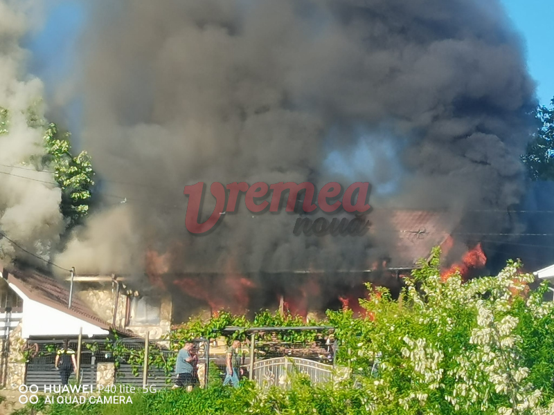 STIRE INITIALA: Incendiu puternic la Gura Bustei! O casă a luat foc, pompierii acționează în forță