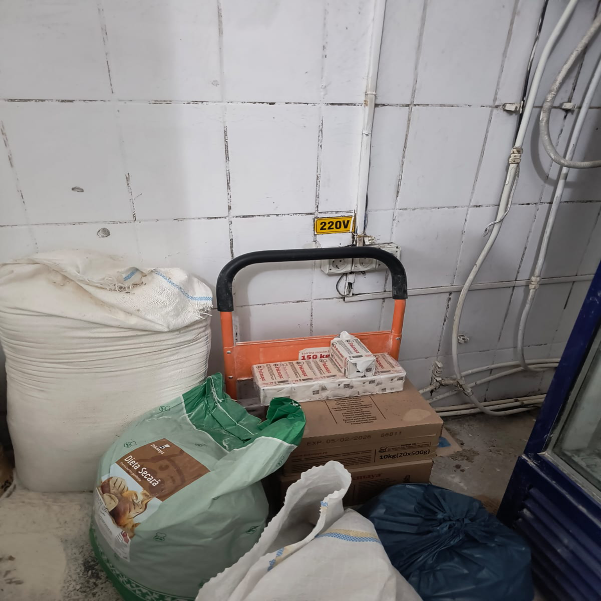 Pereții brutăriei erau deteriorați, cu plăci de faianță sparte și cu crăpături, neigienizați.