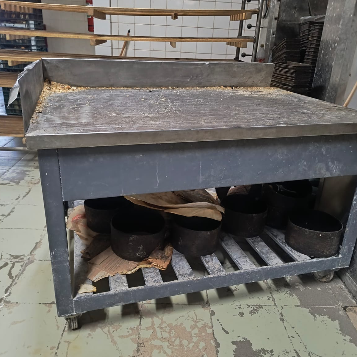 -Rastelele utilizate la depozitarea tăvilor fierbinți la scoaterea din cuptor prezentau un grad avansat de rugină și depuneri consistente de aluat stratificat.