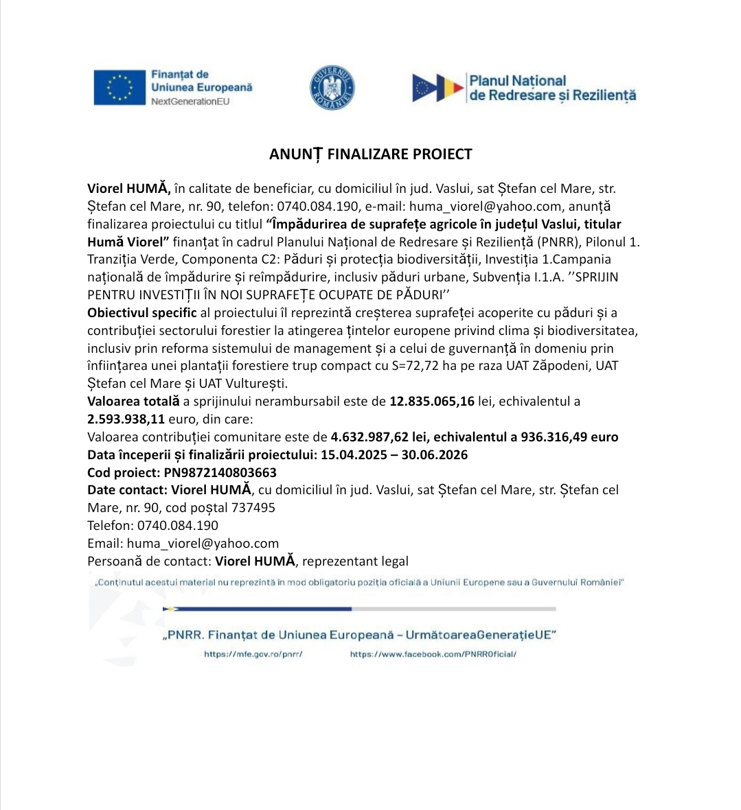 Potrivit unui raport întocmit de Consiliul Judetean (CJ) Vaslui, un numãr de 27 de parcuri eoliene vor fi date în exploatare pânã la finele anului 2015 în judetul Vaslui, valoarea totalã a investitiilor ridicându-se la 100 de milioane de euro. Pe lângã cele 437 de turbine amplasate în 24 de comune vasluiene si orasul Negresti, va fi construitã si o centralã electricã eolianã în comuna Solesti. Cele mai mari investitii în parcuri eoliene se vor face în comuna Fãlciu, unde se vor construi trei parcuri eoliene, în valoare de peste 23 de milioane de euro. „Valoarea totalã declaratã de firmele care au obtinut autorizatiile de constructii pe cele 27 de parcuri eoliene se ridicã la 434,3 milioane lei. Cu exceptia a opt dintre ele, lucrãrile sunt începute în alte 16 locatii, în alte trei fiind deja finalizate si date în exploatare”, a declarat Marian Besliu, directorul Directiei de Urbanism din cadrul CJ Vaslui. Capacitatea totalã de energie electricã ce va fi produsã de cele 27 de parcuri eoliene din judetul Vaslui se va ridica la 917,4 MW, aproape echivalentul hidrocentralei de la Portile de fier I, cea mai mare capacitate de productie a energiei electrice din România, exceptând centrala nuclearã de la Cernavodã.