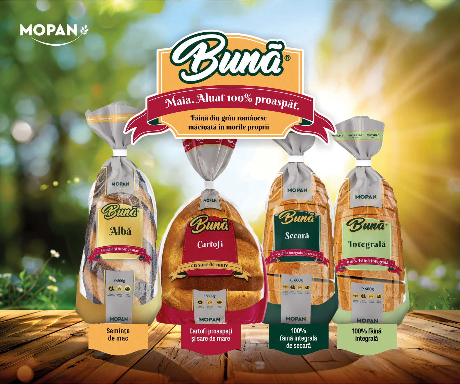 BRAND NOU CU MAIA… „Sãrbãtoreste cu MOPAN Ziua Pâinii în fiecare zi”, asa s-a intitulat ziua portilor deschise la Fabrica de panificatie din Suceava. Cu acest prilej, MOPAN a prezentat, în premierã, noua gamã „Pâinea Bunã”, realizatã cu maia naturalã si fãinã din morile proprii, precum si cele mai noi investitii si modernizãri. Programul a inclus degustãri de produse proaspete si prezentãri dedicate evolutiei companiei si directiilor sale de dezvoltare. Participantii au avut ocazia sã descopere, printr-un tur ghidat al celor trei fabrici MOPAN, etapele procesului de productie, inovatiile tehnologice si îmbinarea mestesugului traditional cu performanta modernã. Au fost prezentate initiativele MOPAN în domeniul sustenabilitãtii, precum reducerea risipei alimentare, optimizarea consumului de resurse si utilizarea fãinii din mori proprii.