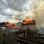 O magazie din lemn a luat foc după ce a fost lovită de trăsnet. Au fost salvați patru porci şi un căţel