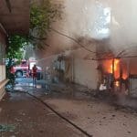VIDEO | Un magazin și o terasă din Bârlad, cuprinse de un incendiu violent. Alte trei proprietăți învecinate, afectate și ele de foc