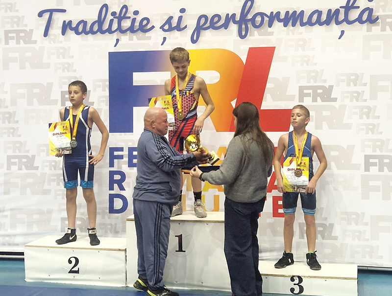 PERFORMANȚĂ… Vasluianul Mihai Iurașcu Gheghici, legitimat la C.S “Viitorul” Vaslui, a avut evoluții excelente și a reușit să cucerească medalia de aur la ediția 2025 a Cupei României la Lupte – Under 15.
