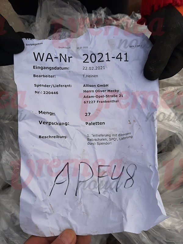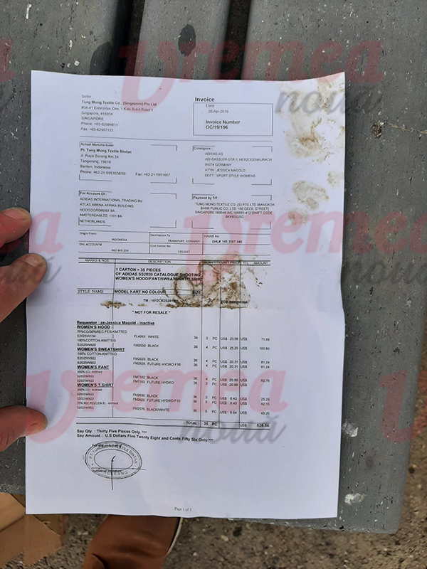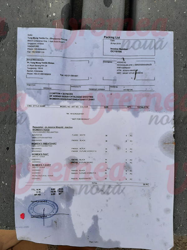 Ambalajele aruncate în câmp proveneau de la o marfă produsă de celebru producător german de echipamente sportive, Adidas și se pare că erau tot pentru o firmă din Germania. Cel puțin așa arătau documentele găsite printre cutii. Cert este că cei de la Compania de Drumuri Naționale s-au ales cu o sarcină în plus și anume de a curăța parcarea și de a preda “prada” la o firmă specializată de dus gunoiul, bineînțeles pe cheltuiala lor. “Nu e normal ce se întâmplă și sperăm că acest incident să fie unul izolat. Totuși să descarci atât gunoi într-o parcare și nimeni din trafic să nu se sesizeze e o anomalie. Ori a dispărut simțul civic, ori cei care au trecut și au văzut cum șoferul  descărca gunoiul li s-au părut a fi un gest normal”, au spus lucrătorii de la Compania de Drumuri Naționale, care s-au mobilizat pentru a strânge gunoiele înainte de a fi împrăștiate de vânt.