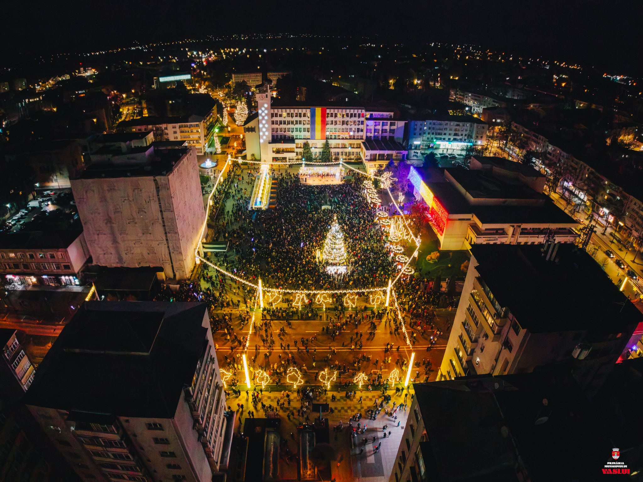 De la ora 17:00, în Piața Civică, orașul a trăit, din nou, emoția aprinderii luminilor de Crăciun, un moment care, an de an, adună mii de oameni în centrul orașului. Anul acesta, parcă mai mulți ca niciodată, vasluienii au venit la bradul împodobit în centrul penru a vedea spectacolul de lumini și culoare. Din păcate, organizatorii nu au pregătit un program variat, cu muzică pentru toate vârstele, și au optat, în continuare, pentru muzica populară, deși piața era plină de copii. Nici invitatul special al serii, Aurel Moldoveanu, nu a făcut cine știe ce furori în rândul copiilor, doar pe prezentatoarea evenimentului a încântat-o, pe motiv că în piesă „Ninge pe Moldova”, artistul a invocat strada Sărărie, unde prezentatoarea a locuit cât timp și-a făcut studiile la Iași. Una peste alta, cu micile nesincronizări, cu puținele momente „moarte”, evenimentul de ieri a fost unul de succes, obținând notă de trecere din partea vasluienilor.
