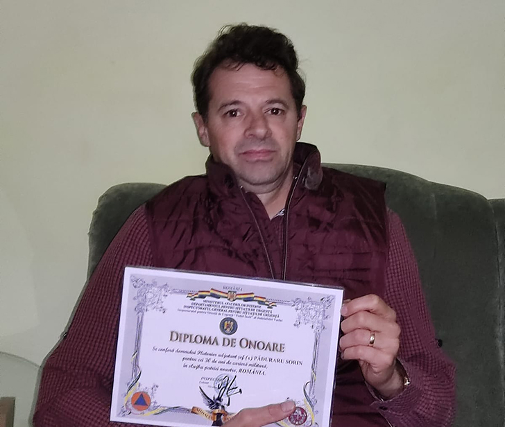 Mai întâi a fost polițist, a trecut apoi în rândul jandarmilor, pentru ca cea mai frumoasă parte a activității de militar de carieră să o petreacă la pompieri. Pentru el, cuvântul „pericol” nu există, fiind un bun exemplu de urmat pentru mai tinerii colegi, care au ales una dintre cele mai riscante și solicitante meserii, cea de pompier. „Las în urmă o carieră de 30 de ani, începută în 1992, cu multe satisfacții personale și profesionale. La pompieri am fost mereu contracronometru, fiindcă timpul ne0a fost mereu un dușman. Nu este suficient să ai curaj, fiindcă meseria de pompier este una solicitantă și riscantă. De multe ori trebuie să luăm dicizii fără a sta prea mult pe gânduri. Și trebuie să fie o decizie responsabilă, pentru a evita tragedii”, a spus Sorin Păduraru. Vasluianul s-a împărțit între pasiunea pentru arma pompieri și cea de sportiv. A fost un atlet remarcabil, multiplu medaliat cu aur la Campionatele Naționale ale Ministerului Afacerilor Interne. „Am concurat aproape la toate probele, însă cel mai mult îmi plac probele de sprint, în special cea de la 100 m, unde am cucerit multe titluri naționale”, spune Sorin Păduraru. El are și două participări internaționale. Prima oară a fost în 2008, când a concurat la la Campionatul Mondial de Atletism al Pompierilor desfășurat la Liverpool, unde a reușit să obțină trei medalii de bronz la trei probe diferite, 100 metri, săritura în înălțime și săritura în lungime. În 2018, Sorin Păduraru a înregistrat o nouă performanță la o competiție internațională. Este vorba despre Jocurile Europene ale Polițiștilor și Pompierilor, organizate în Gibraltar, competiție la care au participat peste 1500 sportivi din 27 țări. Sportivul-pompier a obținut patru medalii, din care 2 de argint și 2 de bronz. Acesta s-a clasat pe locul II la proba de săritură în lungime, locul II la proba 4 x 100 m, locul III la proba 100 m plat și locul III la săritura în lungime. „Ultima competiție națională la care am concurat a fost Campionatul Național de Atletism și Cros al Ministerului Afacerilor Interne din 2019, unde m-am clasat pe locul secund la proba săritura în lungime, obținând titlul de vicecampion național. A venit pandemia și n-am mai concurat, renunțînd la cariera de sportiv”, a completat Sorin Păduraru. Deși a ieșit la pensie, subofițerul în rezervă nu va renunța la cariera sportivă. Sorin a descoperit un alt sport. Este vorba despre badminton. Acesta are de gând să înființeze o grupă de copii, care să-i inițieze în tainele acestui sport și cu care să participe la competițiile naționale. Îi urăm multă sănătate, succes în noua carieră sportivă și pensie cât mai lungă.