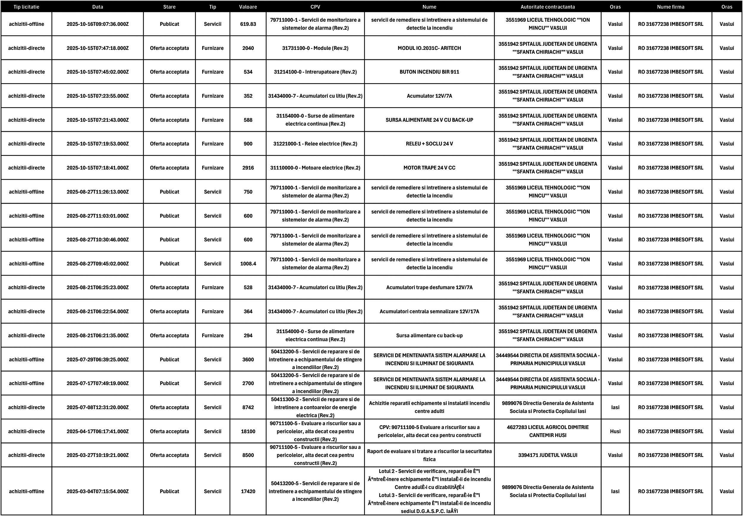 Conform datelor publice, Imbesoft SRL are un singur asociat și un singur administratror, Elena-Cristina Chiriac. Firma are ca principal obiect de activitate comerțul cu amănuntul defășurat în afara magazinelor. Așa cum se vede din lista contractelor, firma este specializată în domeniul PSI. Cele mai multe contracte par a fi venit de la spitalul județean, dar sunt multe alte insituții care i-au atribuit direct contractele acestei firme, precum DGASPC, Liceul “Ion Mincu” sau chiar Consiliul Județean, dacă e să ne uităm doar la cele recente. Firma apare ca funcțională din 2013, iar anul trecut a avut o cifră de afaceri de aproximativ 300 mii lei.