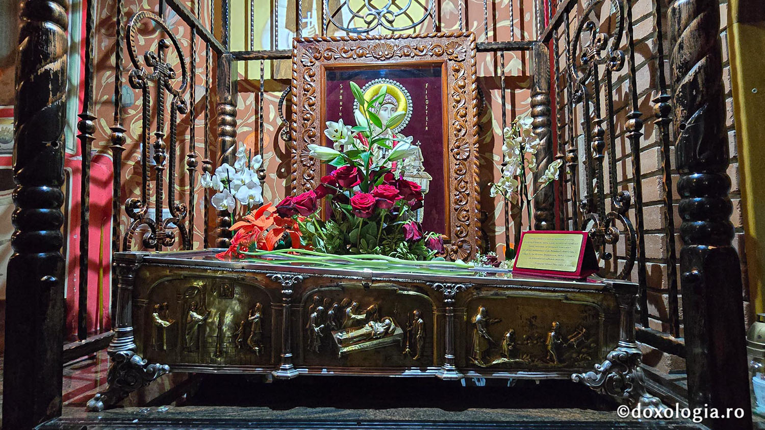 CANDELA CARPAȚILOR…Dacă Moldova o are ocrotitoare pe Sfânta Cuvioasa Paraschevă, cunoscută în popor ca Sfânta Vinerei, Țara Românească are drept apărătoare pe Sfântulița, ale cărei moaște întregi sunt la Curtea de Arges, acolo unde este cea mai frumoasă mănăstire din țara, ctitorie a marelui voievod, Neagoie Basarab. Sfânta Muceniță Filofteia este pomenită, astăzi, pe 7 decembrie, iar moaștele sale sunt scoase în curtea Mănăstirii Argeșului spre închinare de către Arhiepiscopia Argeșului și a Muscelului. Minunile Sfântuliței sunt cunoscute în toată România, însă în Oltenia și Muntenia aceasta este prețuită și cinstită, precum Sfânta Cuviosă Parascheva în Moldova, iar pelerinajul la aceasta este unul permanent. Numită și Candela Carpaților, povestea moaștelor Sfântuliței este una incredibilă. Ca moaștele acesteia să nu fie împrăștiate, Mitropolitul Cozma, pe 10 mai 1791 le-a învelit cu un sac pe care a scris un blestem îngrozitor. Acest lucru a fost descoperit de restauratorii de la Monetăria Statului, când s-a restaurat racla în care a fost așezată Sfânta Filofteia, în anul 2004. Iată ce spune acest blestem, scris pe sacul care învelește moaștele: “Poruncim cuvioșiei tale Arhimandrite chir Parthenie, Igumen Argeșului, să le pecetluiești într-un săculețu de bogasin nou lăsându-i afară numai mâna cea dreaptă pentru sărutarea norodului. și așa pecetluite să le așezi în sicriu. și să știe fieșcare să se ferească a nu cuteza să ciupească cât de puțin din sfintele moaște, că am pus blestem asupra cui a cuteza a să atinge, să ia. Într-a acesta și chip să urmezi! și să fii blagoslovit! 1791, mai 10”. Mai jos citiți un text scris de redactorii de la Ziarul Lumina, ziarul oficial al Bisericii Ortodoxe Române.