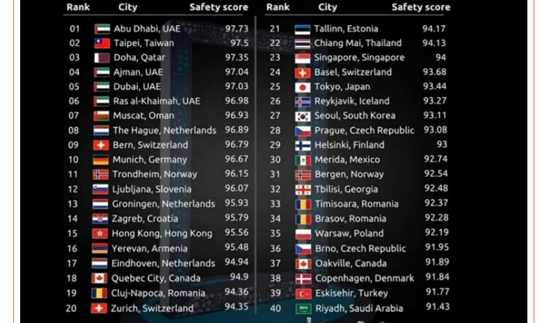 Clasamentul a fost realizat pe baza mai multor indicatori, printre care criminalitatea, calitatea vieții și infrastructura publică, iar rezultatul reconfirmă reputația Clujului ca centru universitar vibrant, oraș al festivalurilor și destinație preferată de tineri, scrie publicația clujenii. La vârful clasamentului se situează Abu Dhabi, iar la coada listei, pe locul 40, se află Riyadh.