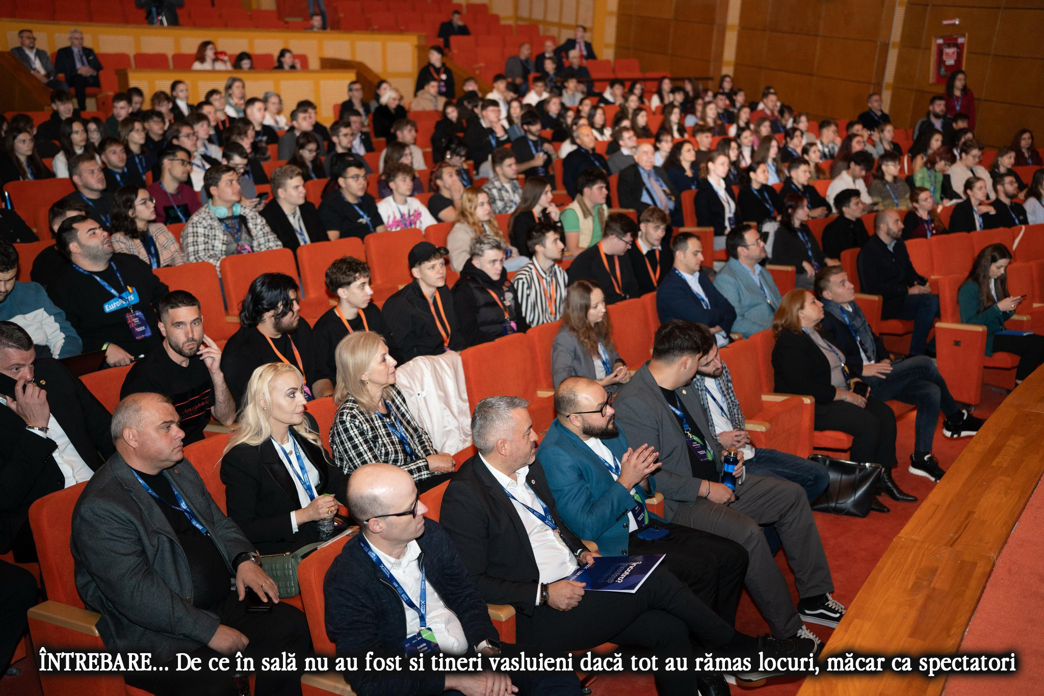 În timp ce elevul multipremiat international din Bucuresti fãcea cale întoarsã acasã din cauza exigentilor sefi ai Summitului X, care au spus cã nu mai are loc pe lista de invitati, sala de la Centrul cultural „Dimitrie Cantemir” a avut zeci de scaune goale. De la festivitatea de deschidere si pânã la gala de sâmbãtã seara, Summitul Tinerilor X s-a desfãsurat la Vaslui cu sala pe jumãtate goalã. Au fost ocupate doar scaunele din prima jumãtate a scenei, pe care organizatorii au avut grijã sã le fotografieze si sã le prezinte publicului. Evident, jumãtatea superioarã a sãlii, unde locurile erau aproape toate goale nu s-au vãzut în fotografiile prezentate de Primãrie sau Consiliul Judetean. Dar nu este prima datã când se întâmplã asa. Si în cadrul altor actiuni desfãsurate în cadrul proiectului Vaslui- Capitala Tineretului evenimentele s-au desfãsurat cu sãlile pe aproape goale. Este greu de crezut cã tinerii din Vaslui nu ar fi interesati de teme la larg interes sau de activitãti culturale. Problema tine de cum îi atrag organizatorii pe tinerii din Vaslui. Câteva postãri pe retelele sociale si mobilizarea câtorva tineri din cele mai bune licee din oras, cu sigurantã nu reprezintã o solutie. Tinerii din Vaslui învatã si la licee tehnologice. La ei se gândesc organizatorii? Pare cã nu.