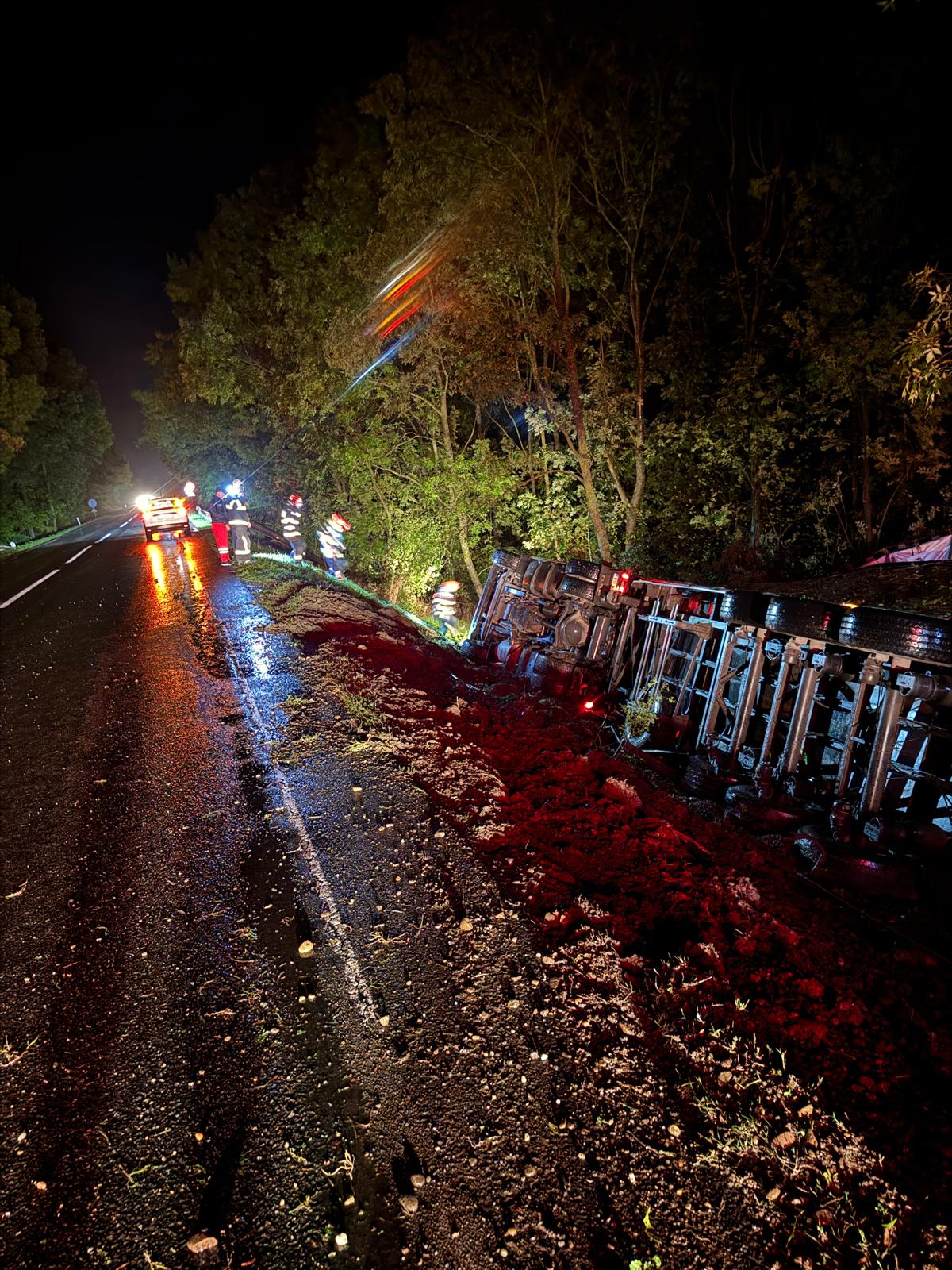 Un TIR de la Vanbet încărcat cu pui s-a răsturnat, la Secuia
