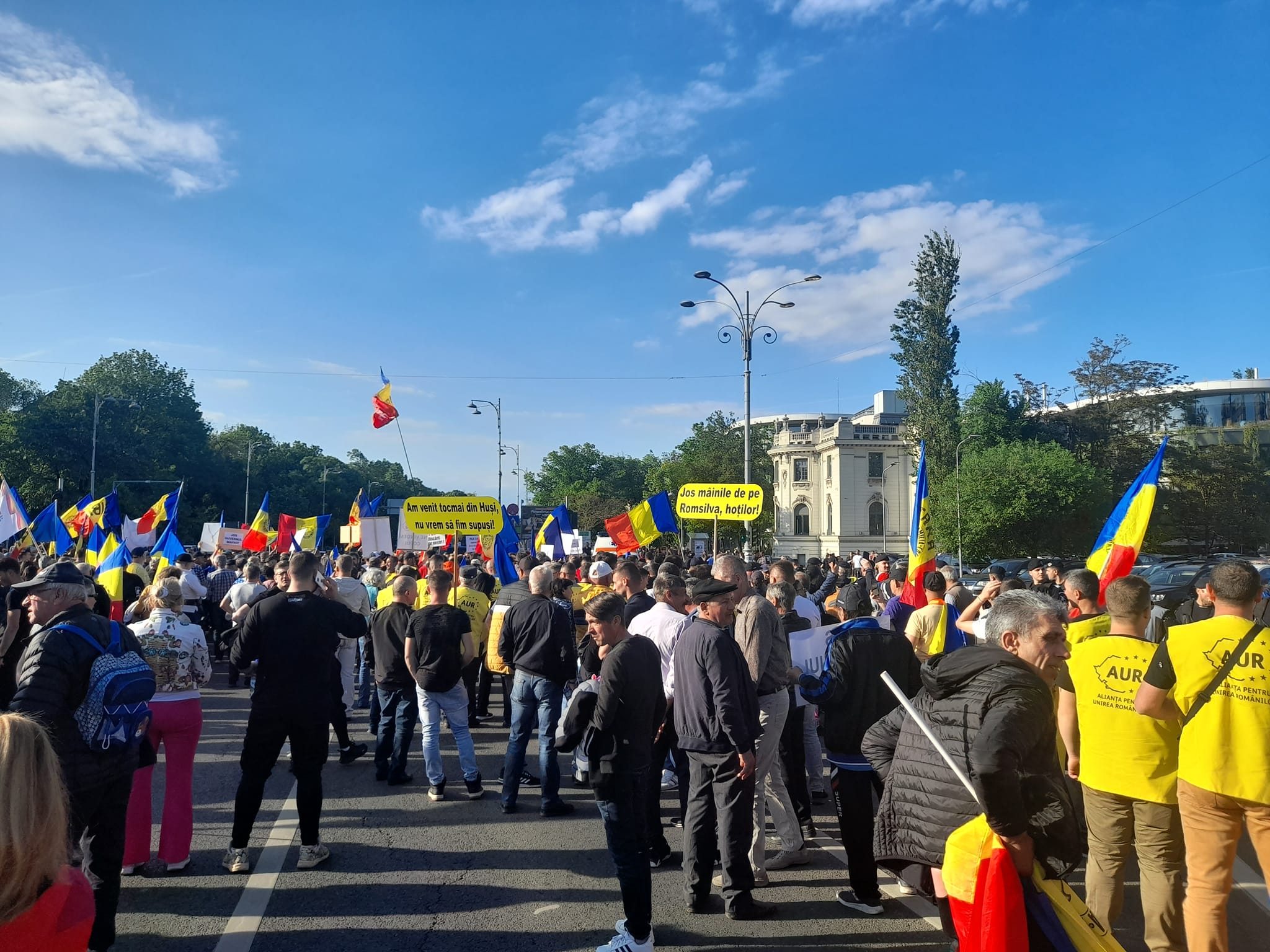 Au protestat aproape 20.000 de oameni pe străzile capitalei, iar George Simion a fost în permanență în fruntea lor. Iată ce a spus acesta, printr-un live pe rețelele de socializare, cerând în permanență simpatizanților să viralizeze acest video, pentru că “unele televiziuni” transmit informația de la acest protest în mod intenționat distorsionat. “Acest Guvern trebuie să plece! Acest Guvern care cedează bogățiile țării, care vrea să cedeze și copiii României, trebuie să plece! E timpul să-i dăm jos! Ne-am strâns astăzi foarte mulți, văd că nu mai avem contra manifestație. AUR este forța care va dărâma sistemul lor. AUR va reuși să-i dea jos. Suntem peste 10.000 de oameni (n.r. numărul manifestanților în momentul în care s-a plecat în marș de la Palatul Parlamentului) și nu înțeleg de ce la unele televiziuni spun ca sunt o mie sau două mii de oameni. Protestăm pentru copiii României. Se strânge șurubul pentru guvernarea satanistă! Cu toți parlamentarii AUR vom bloca toate legile anti-România pregătite la vot săptămâna viitoare. Atenție PSD, atenție PNL, de data aceasta toți românii sunt uniți, nu mai stau divizați! Ieșim în stradă pentru copiii României, pentru bogățiile țării și pentru a apăra România. Sunt proiecte de legi PL-x 143, PL-x 144, PL-x 145, cum ar fi cele ce vizează modificarea Ordonanței Guvernanței Coorporative, unde ni se cere să listăm la bursă societățile de stat și să le dăm străinilor (Hidroelectrica, Tarom, Romsilva și multe alte regii autonome), modificarea statului executorului judecătoresc, cea cu copiii care vor să ni-i scoată din familii și ultima bombă dată de Iohannis – Black Sea Oil (n.r. compania care a primit recent dreptul de a exploata gaze naturale din Marea Neagră) scutită de impozitare, ca și OMV. Luptăm pentru bogățiile țării, de asta suntem în stradă. Le spunem PSD și PNL să respingă aceste proiecte de legi. România se destramă, vrem o țară suverană!”.