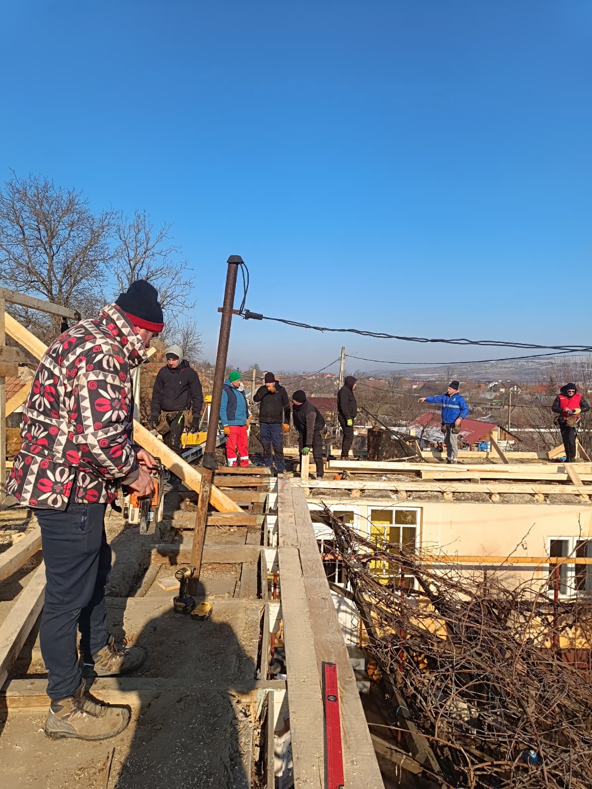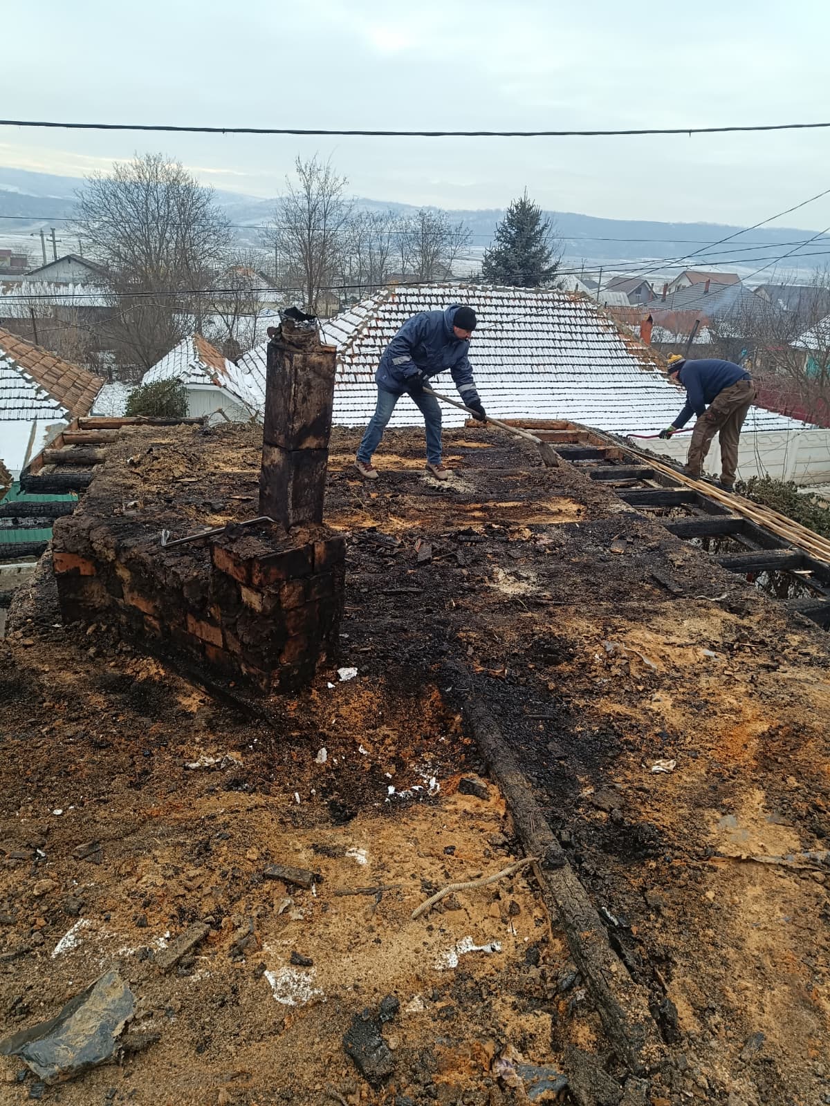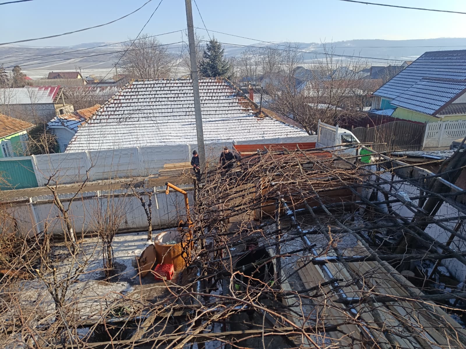JOS PĂLĂRIA… Povestea a două familii cărora le-au ars casele a impresionat întreaga comunitate din Văleni care în doar trei zile a refăcut tot ceea ce a distrus incendiul. Mobilizarea, una exemplară, a fost inițiată de părintele Marius Ciovnicu, care nu se află la prima astfel de “ispravă”. Tot cu ajutorul oamenilor din sat, acesta a reușit să tencuiască pe exterior toată biserica de lângă stadion, și asta într-o zi și jumătate. În trecut, părintele împreună cu tinerii din comună au mai refăcut o casă la ieșirea spre Solești, care, tot așa, fusese distrusă de flăcări. Acum, acesta a reușit să strângă în jurul său peste 50 de persoane, care nici în jumătate de săptămână, ca niște furnicuțe, au reconstruit cele două locuințe. O contribuție însemnată l-au avut și cei trei antreprenori locali, care dețin depozite de materiale de construcții, dar și primăria, care a pus la dispoziție un buldoexcavator.