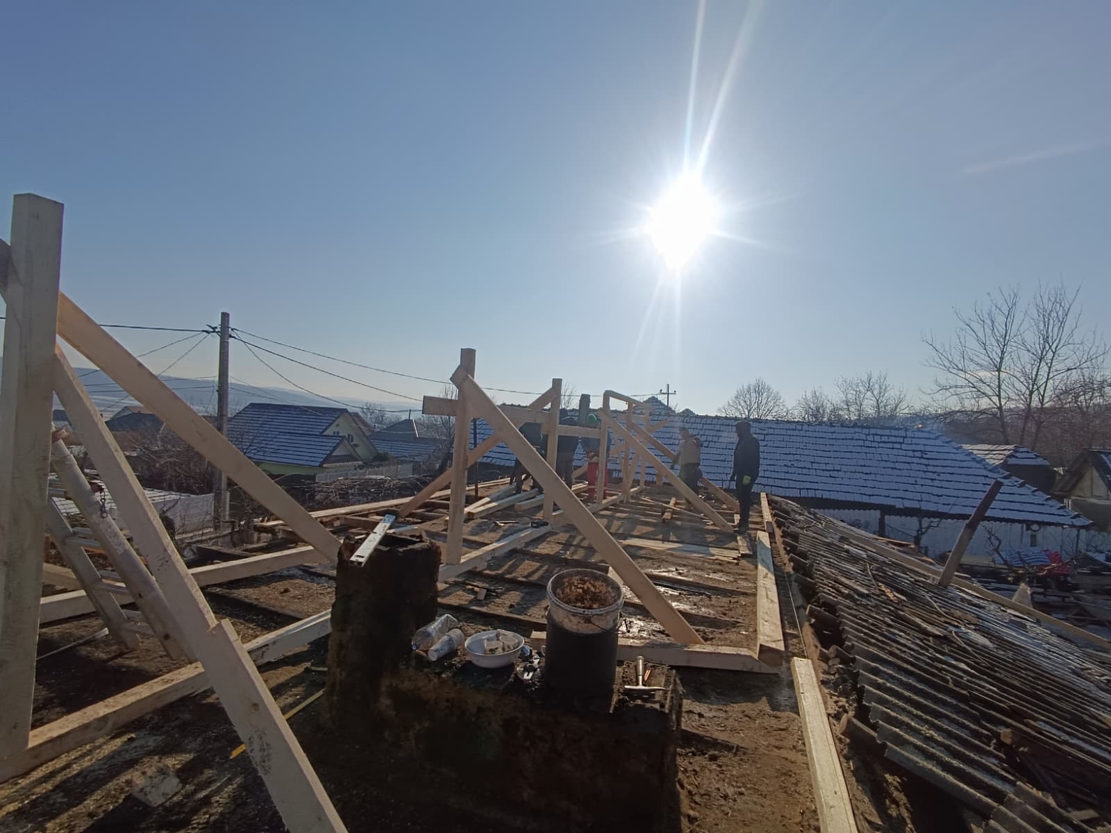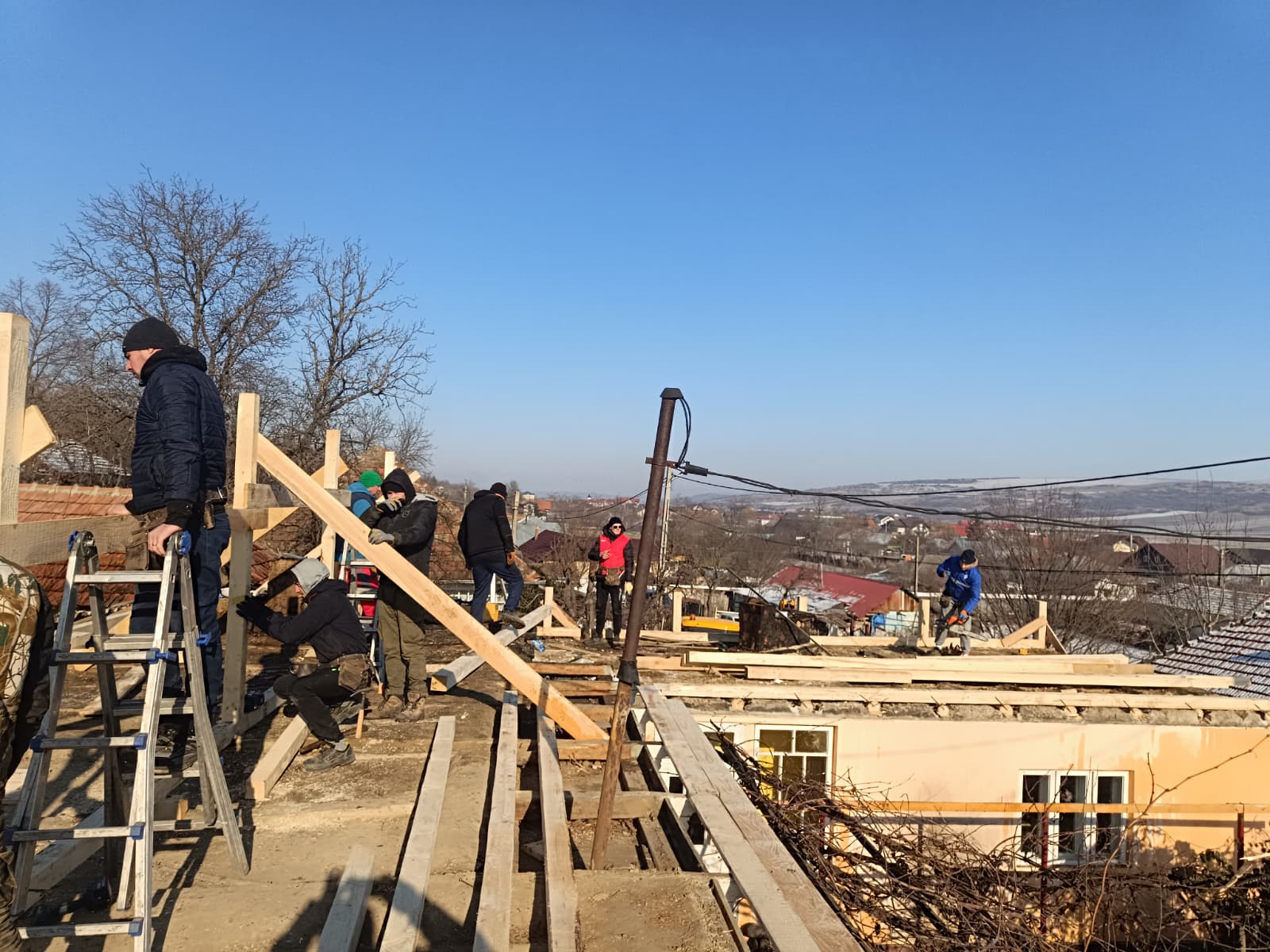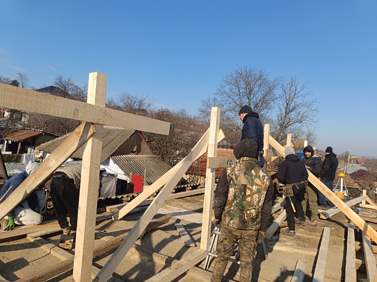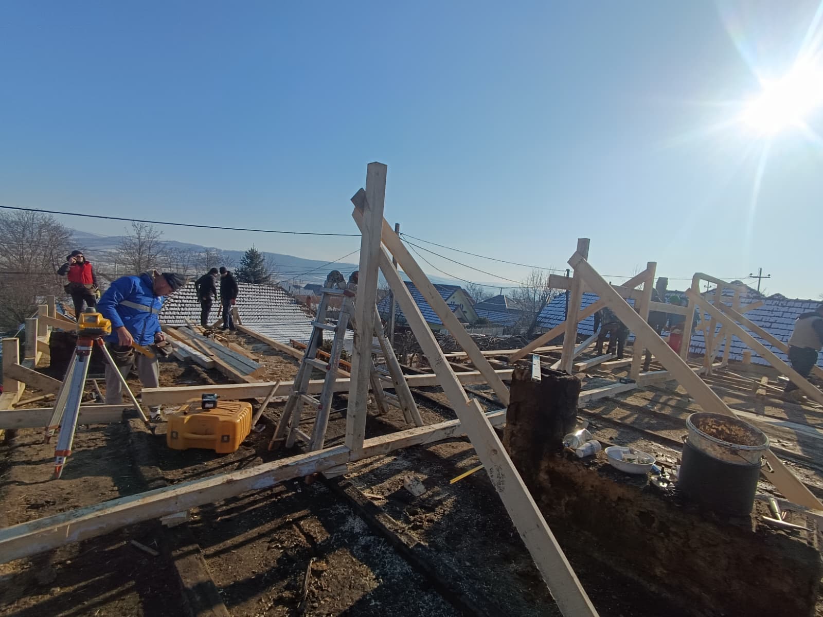 JOS PĂLĂRIA… Povestea a două familii cărora le-au ars casele a impresionat întreaga comunitate din Văleni care în doar trei zile a refăcut tot ceea ce a distrus incendiul. Mobilizarea, una exemplară, a fost inițiată de părintele Marius Ciovnicu, care nu se află la prima astfel de “ispravă”. Tot cu ajutorul oamenilor din sat, acesta a reușit să tencuiască pe exterior toată biserica de lângă stadion, și asta într-o zi și jumătate. În trecut, părintele împreună cu tinerii din comună au mai refăcut o casă la ieșirea spre Solești, care, tot așa, fusese distrusă de flăcări. Acum, acesta a reușit să strângă în jurul său peste 50 de persoane, care nici în jumătate de săptămână, ca niște furnicuțe, au reconstruit cele două locuințe. O contribuție însemnată l-au avut și cei trei antreprenori locali, care dețin depozite de materiale de construcții, dar și primăria, care a pus la dispoziție un buldoexcavator.