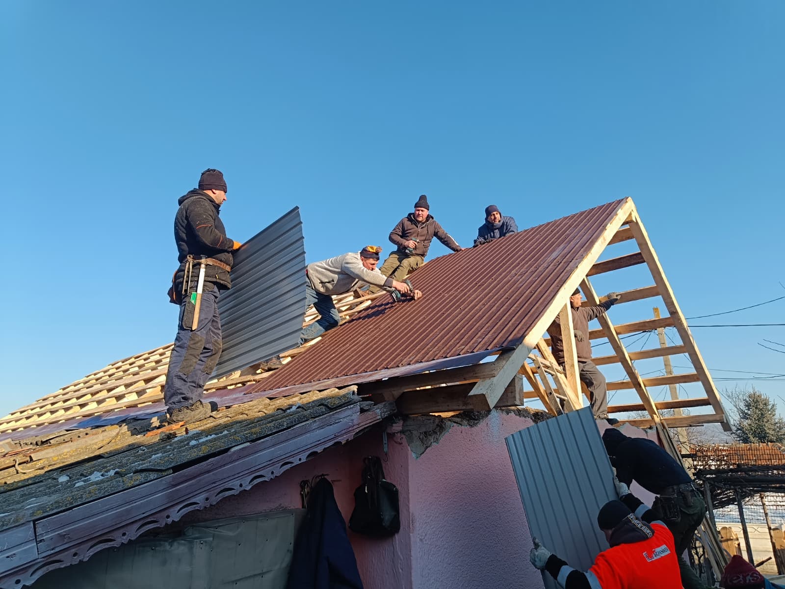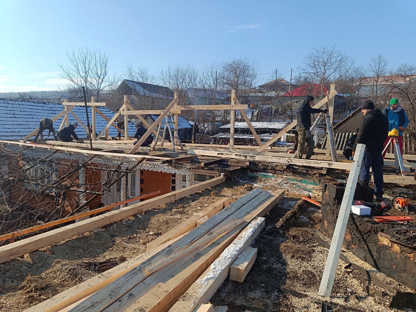 Luni dimineață, în jurul orei 3, o altă tragedie avea să se abată peste județul Vaslui. În comuna Văleni, casa în care locuia Dorin, un bărbat în vârstă de 63 ani, împreună cu tatăl său, moș Ghiță, în vârstă de 90 de ani, a fost cuprinsă de flăcări din cauza coșului de foc neprotejat corespunzător. La sosirea forțelor de intervenție, incendiul se manifesta generalizat la mai multe anexe. În total au ars anexa în care locuia moș Ghiță și casa veche în care locuia Dorin, pe o suprafață de aproximativ 170mp, însă flăcările s-au extins și asupra unei anexe a vecinilor, cu suprafața de 130mp. Din nefericire, Dorin a fost surprins în incendiul respectiv, suferind mai multe răni grave, care ulterior i-au provocat decesul. Neputând să rămână nepăsători în fața unei astfel de tragedii, oamenii din comună și-au adunat forțele și în trei zile au reparat toate stricăciunile provocate de foc. “Băieții care s-au mobilizat în urma acestui necaz mai au <<antecedente>>, dacă pot să spun așa, în sensul că în urmă cu doi ani a mai fost un caz asemănător la ieșirea din Văleni spre Solești. Tot așa, o casă luase foc. Și la fel ca și atunci, și acum ne-am mobilizat foarte bine și am reușit să refacem locuințele afectate de incendiu. Luni dimineață, la câteva ore după incident, am sunat toți băieți de prin sat care lucrează în construcții, cu precădere pe cei care fac acoperișuri, iar răspunsul lor a fost foarte prompt, pentru că așa cum am mai spus, aveam antrenament, mai făcusem așa ceva. În plus, i-am sunat și pe băieții care au firme de construcții, aceștia ajutându-ne cu materialele de care aveam nevoie și așa am dat drumul la treabă. La un moment dat, erau în jur de 50 de băieți care lucrau la construcțiile distruse de flăcări. Un adevărat furnicar. În plus, am primit sprijin și din partea primăriei, care ne-a ajutat cu un buldoexcavator. Mă bucur că atunci când trecem prin momente mai dificile, mai greu de depășit, comunitatea din Văleni este foarte săritoare și ajută necondiționat. Ca să vă dau un alt exemplu, în vara anului trecut am reușit cu consătenii noștri să tencuim prin exterior toată biserica de lângă terenul de fotbal. Aproape 500 mp de tencuială într-o zi și jumătate. A fost ceva excepțional, care nu are cum să nu te impresioneze. Oameni din Văleni sunt extrem de sufletiști, și de fiecare dată când au ocazia, demonstrează lucrul acesta, motiv pentru care mie nu îmi rămâne decât să le mulțumesc”, ne-a declarat părintele Marius Ciovnicu.