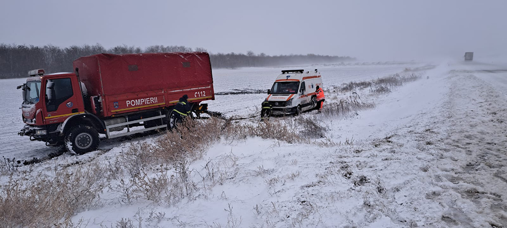 PROBLEME DIVERSE… Vremea extremă a afectat puternic județul Vaslui, unde duminică s-au înregistrat evenimente în lanț din cauza ninsorilor și viscolului. Incidentul care a pus cele mai mari probleme autorităților vasluiene a fost accidentul de pe Drumul European 581, între Sârbi și Stâna Costești, acolo unde vântul a măturat, pur și simplu, mai multe vehicule de pe carosabil, printre care și un autocar plin cu pasageri. S-a activat planul roșu de intervenție, iar pompierii ISU Vaslui împreună cu angajații SAJ Vaslui și ai spitalului “Elena Beldiman” din Bârlad s-au mobilizat exemplar, unii venind de acasă pentru a acorda îngrijiri medicale victimelor. În momentul intervenției de la Stâna Costești, pompierii au văzut cu ochii lor cum rafalele puternice de vânt mutau mașinile ca pe niste cutii de chibrituri, chiar dacă nu se aflau în deplasare. Tot din cauza vântului, aproximativ 30 de localități au avut probleme mari cu alimentarea cu energie electrică, asta însemnând un număr total de peste 4.800 de abonați. De asemenea, în sudul județului, viscolul a îngreunat foarte mult deplasarea autospecialelor ISU și SAJ Vaslui la cazurile unde au fost solicitate, însă chiar și în aceste condiții vitrege, salvatorii au reușit să-și ducă misiunile la bun sfârșit. În total, ieri, șase drumuri naționale și două drumuri județene au fost închise din cauza zăpezii viscolite.